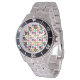 Este relógio masculino tem uma design moderna do século médio de semicírculos risados e semicírculos sólidos reunidos num campo de branco.
