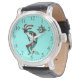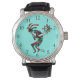 Este é um Único "Um dos tipos" do Sudoeste Kokopelli Watch! Ele apresenta um Kokopelli sudoeste em Turquoise, Laranja e Negro dançando e tocando a flauta sob o sol em um fundo de turquesa! Design De Arte Original Pelo Artista Kerry Miller.