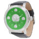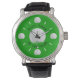 Este relógio divertido é o presente perfeito para o amante de golfe em sua vida! Ele apresenta um fundo verde de "grama" com bolas de golfe nas posições 3, 6, 9 e 12 e traços para os outros números. O centro do relógio apresenta uma grande bola de golfe com lâminas de grama cercadas por texto que diz: Qualquer hora é o tempo.