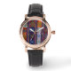 Estilo: Relógio feminino vintage em ouro rosa com pulseira de couro preta