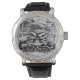 Esta é a Vintage Black Leather Strap Watch eWatch da transportadora aérea Dwight D. Eisenhower. O porta-aviões Dwight D. Eisenhower é um transportador de aeronaves.