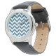 Hip e a moderna Trendy Chevron Watch. Este legal relógio apresenta um padrão de zag em zague em azul e branco. Adicione texto a este design para lhe dar um toque pessoal.