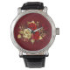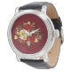 A composição de duas rosas vermelhas pintadas artisticamente e uma rosa ouro, decorada com ouro, folhas de joias sobre fundo texturizado.
