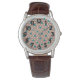 Este relógio masculino tem uma design geométrica de repetição de triângulos castanhos e bronzeados com círculos de turquesa em cima de um campo de esbranquiçado. Quer o mesmo design em cores diferentes? Me mande mensagem.