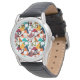Este relógio tem um design moderno do século médio de triângulos dispersos, alguns com buracos, em cores retrorreflectoras.