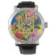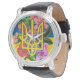 Relógio Tridente ucraniano e bandeira da Ucrânia com flore