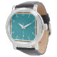 Este relógio com um aqua e um rosto cor de laranja está bastante na moda.