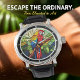 Bring the vibrant allure of the tropics into your home with this stunning decorative wall clock, showcasing a colorful parrot in a captivating stained-glass style design. The artistic clock face features a close-up of the exotic bird, its plumage bursting with brilliant colors and set against lush green foliage, creating a unique and intricate work of art. This functional timepiece is more than a way to tell time; it's a beautiful piece of nature-inspired wall art that transforms any room into a tropical sanctuary. Perfect for bird lovers, its handmade look and vibrant design exemplify creative craftsmanship, adding an ornate and stylish focal point to your home decor.
