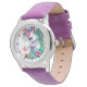 Um lindo unicórnio com flores no fundo, numa banda de pulso de silicone roxo