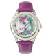 Um lindo unicórnio com flores na parte inferior, em uma pulseira de silicone roxo