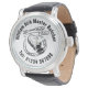 Butcher's Watch com sua escolha de nome de empresa e número de telefone. A ilustração mostra uma junta de carne de bovino. Fique atento a um vendedor de carne ou a um proprietário do comércio retalhista de carne ou membro do funcionarios.