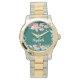 Um fundo verde escuro dispara as flores rosa ilustradas e marrom com folhas brancas e verdes. Um presente perfeito para uma senhora especial de qualquer idade!