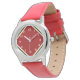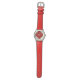 Você olhará definida à moda neste relógio. Caracterizando uma banda vermelha e branca, este relógio tem uma cara vermelha cardinal com aparamento preto, branco, e do ouro e números brancos.