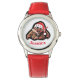 Relógio bonito para a menina adolescente com design do macaco dos desenhos animados no chapéu do papai noel