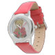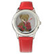 Um relógio de criança fabuloso em vermelho, com um ursinho bonito segurando um monte de rosas vermelhas - um presente ideal para alguém que você ama!