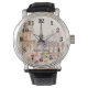 Desenho bonito da Elegante Paris França Eiffel Tower Vintage Watercolor Viagem. Você pode adicionar sua própria foto ou texto personalizado para criar seu próprio relógio. Isso será perfeito como presente personalizado.