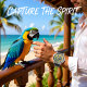 A colorful watch featuring a macaw parrot illustrated in a stained glass pattern, perched on a branch amidst tropical leaves. The artwork evokes a cheerful ambiance, perfect for vibrant style.