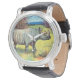 A imagem neste relógio de pulso foi reproduzida a partir de um antigo cartão postal.