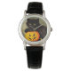 Relógio Vintage Halloween Cat e Jack-o'-lantern