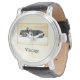 Lembrando nosso passado automotivo. Um carro de corrida de vintage preto à velocidade numa pista de corrida. O texto da cópia pode ser alterado ou removido.