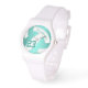 Este relógio de voleibol feminino esportivo apresenta um bonito gráfico de turquesa / teal e voleibol branco que tem um padrão caleidoscópico floral artístico misturado com os painéis não-brancos de voleibol - seu nome e número de camisa são personalizáveis - por katz_d_zynes