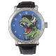 T-rex engraçado com fone de ouvido e fone de ouvido de realidade virtual.