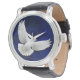 Design de arte original de uma pomba branca, um símbolo de paz, da artista Carolyn McFann do Two Purring Cats Studio impresso num relógio de qualidade.