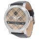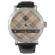 Desenho xadrez bege e marrom. Padrão contínuo. Texto personalizado e monograma.