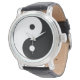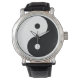 Black Vintage Leather Watch com a foto de um yin yang no rosto. O relógio é personalizável. Qualquer texto ou imagem pode ser adicionado.