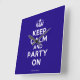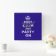 Com base no original Keep Calm e... poster este creme e azul Mantenha Calm e Party On Wall Clock apresentam uma fonte personalizada que corresponde ao original.