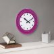 Relógios coloridos de paredes modernas com círculos geométricos coloridos com a face do relógio deste decor de parede decorativo design de relógio para a sua cozinha, casa-de-banho ou qualquer quarto na sua casa que você queira adicionar alguma cor e caráter. As cores incluem roxo, preto e branco.