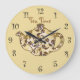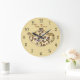 A parede da cozinha fica recheada de cores castanhas e cremosas e imagem de um bule de chá e palavras "Tempo de chá" na face do relógio nesta design de decor de parede cênica para sua cozinha, banheiro ou qualquer quarto na sua casa que você queira adicionar alguma decoração do tema do chá.