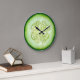 design de relógio de cozinha engraçada com uma nova fatia de picles de pepino na cara do relógio. Um design doméstico divertido e novo para a sua cozinha, quarto de família ou quarto de crianças na sua casa. Projetado para qualquer um que goste de picles ou que queira adicionar algum personagem com um tema de comida para as paredes da sua cozinha.
