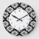 design de relógios de parede de cozinha em uma cor damasco floral elegante em preto e branco e números de ricos na face do relógio para qualquer decoração caseira. Um belo design doméstico para a sua cozinha, quarto de família ou qualquer quarto na sua casa que você queira adicionar algum caráter e estilo.