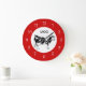 O relógio da cozinha de vaca de campo bonito tem a imagem de uma vaca vetora preta e branca na face do relógio, neste design de relógio decorativo de decoração de parede para a sua cozinha, banheiro ou qualquer quarto na sua casa que você queira adicionar algum caráter e estilo. As cores incluem vermelho, preto e branco.