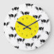 Relógios de cozinha de vaca de campo bonito com padrão de vacas vetoras preto e branco em toda a face do relógio nesta design de relógio decorativa de decoração de parede para a sua cozinha, banheiro ou qualquer quarto na sua casa você quer adicionar algum caráter e estilo. As cores incluem branco, preto e bege.