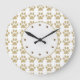 Os relógios de padrão de patas de cães giros com esquema de cor bege e branco na face do relógio nesta design de relógio animal decor de parede divertida para a sua cozinha, casa de banho ou qualquer quarto na sua casa onde você queira adicionar alguma cor e caráter.