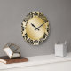 Bonito relógios de parede úmidos com cor damasco floral preta e dourada e cara de relógio de aspecto dourado neste design de relógio decorativo de decoração de parede para a sua cozinha, sala de jantar ou qualquer quarto na sua casa onde você queira adicionar alguma cor e caráter. As cores incluem preto, branco e ouro.