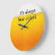 Prende este relógio de decoração de parede com tema engraçado com fundo digital que parece cerveja com uma cabeça e um ditado humorístico que diz "É sempre cerveja O'Clock". Faz um presente de excelente para uma caverna de homem ou quarto de dormitório.