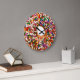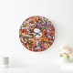 A parede da cozinha engraçada fica fechada com uma rosquinha fresca e saborosa com aspersores na face do relógio. Um design doméstico divertido e novo para a sua cozinha, quarto de família ou quarto de crianças na sua casa.