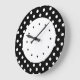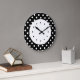 As bolinhas modernas têm relógios de parede com pontos pretos e brancos na face do relógio nesta design de relógio decorativo de decoração de parede para a sua cozinha, banheiro ou qualquer quarto na sua casa que você queira adicionar alguma cor e personagem.