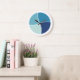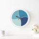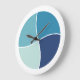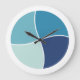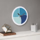 Relógios de parede modernos com arte colorida em círculo geométrico em vários tons de azul sobre fundo branco. Projetado para qualquer decoração moderna ou contemporânea, você decorará suas paredes em estilo com este design colorido. Perfeito para uma sala de estar, sala de jantar, quarto ou banheiro.