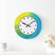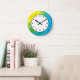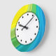 Relógios coloridos com lindas cores neste design de relógio decorativo de decoração de parede para sua cozinha, banheiro ou qualquer quarto na sua casa que você queira adicionar estilo e personagem. As cores incluem azul, verde e amarelo.