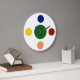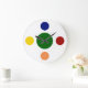 A parede moderna faz relógios em uma design de cor primária em negrito na face do relógio neste relógio de decoração de parede para sua cozinha, banheiro ou qualquer quarto na sua casa que você queira adicionar algum caráter e estilo. A face do relógio tem cores do mecanismo de pesquisa.