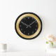 Os relógios modernos de decoração de parede com esquema de cores preto e dourado na face do relógio neste design de relógio decorativo de decoração de parede para a sua cozinha, banheiro ou qualquer quarto na sua casa que você queira adicionar alguma cor, personagem ou estilo.