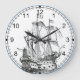 A parede náutica é bloqueada com imagens velhas vintage de veleiro de navio alto na face do relógio nesta design de relógio decorativa de decor de parede para o seu barco, veleiro, cozinha ou qualquer quarto na sua casa que você queira adicionar algum decor e personagem náuticos. As cores incluem preto e branco.