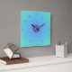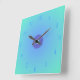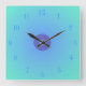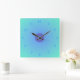 Um relógio de parede muito simples em aqua/verde. Um centro circular em mauve e números azuis claros. Disponível em formas quadradas e circulares.