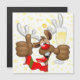 Personagem de desenho animado de rena de Natal engraçado, parecendo realmente bêbado e sonolento, depois da festa, ainda com um copo de champanhe na pata e com o polegar para cima. Arte Gráfica Vetorial Original Copyright BluedarkArt TheChameleonArt.