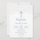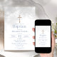 Convide seus familiares e amigos para celebrar um momento especial com nosso lindo convite de Batismo. A elegante estampa de renda e o crucifixo com efeito dourado em um fundo branco limpo, combinados com as letras elegantes em azul empoeirado e o reverso, exalam um charme sofisticado. O convite está pronto para fácil personalização, para que você possa adicionar seu toque único e tornar este evento verdadeiramente memorável. Deixe que este convite dê o tom para uma celebração abençoada e inesquecível do Batismo. Além do mais, com a capacidade de baixar esse design instantaneamente, você pode enviá-los rapidamente!