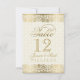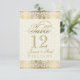 Elegante fundo bege claro de damasco floral com tons dourados e desenho ornamentado de renda floral. Número da mesa totalmente personalizável.